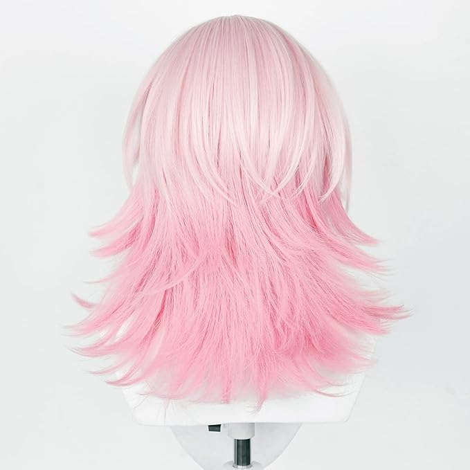 The custom pink high-temperature matte fiber used in this wig not only embodies March 7th's soft and enchanting look but also withstands heat styling, making it perfect for creating a long-lasting, flawless style. Whether you're using a blow dryer or curling iron, this wig maintains its shape and retains a vibrant pink color for the duration of your cosplay event.