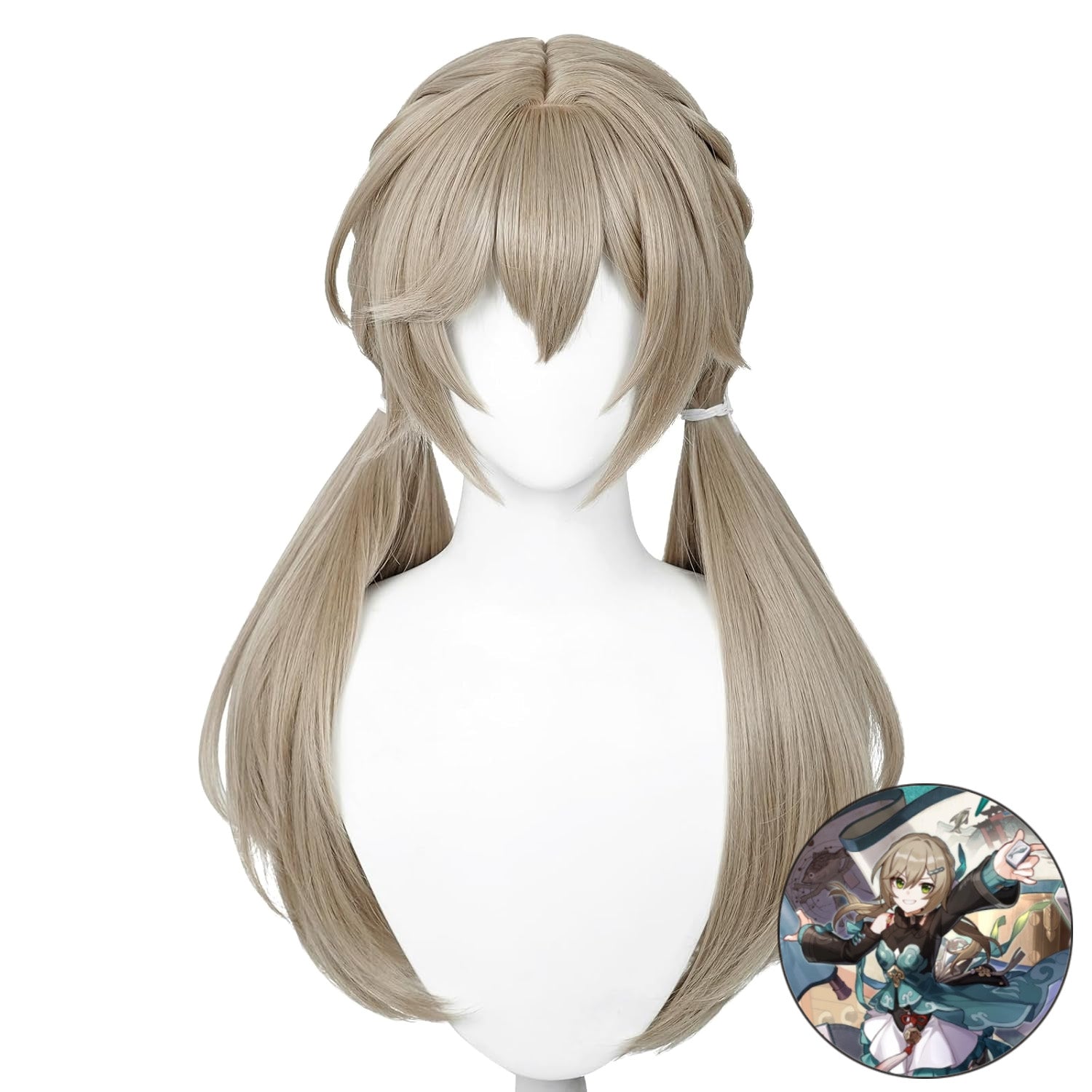 Qingque from Honkai: Star Rail is a character whose playful yet calculating nature is perfectly reflected in her distinctive appearance. With a personality that blends charm, wit, and a dash of mystery, Qingque carries herself with casual elegance. Her signature hairstyle, marked by the unique Z-shaped parting and dual low ponytails, encapsulates her quirky yet composed essence. This SAKUMETA wig captures Qingque’s look with exceptional detail, featuring custom dark matte rust-gold fibers that replicate her iconic color and style. The realistic silicone scalp, along with the fine parting, ensures that every strand mirrors her distinctive charm.